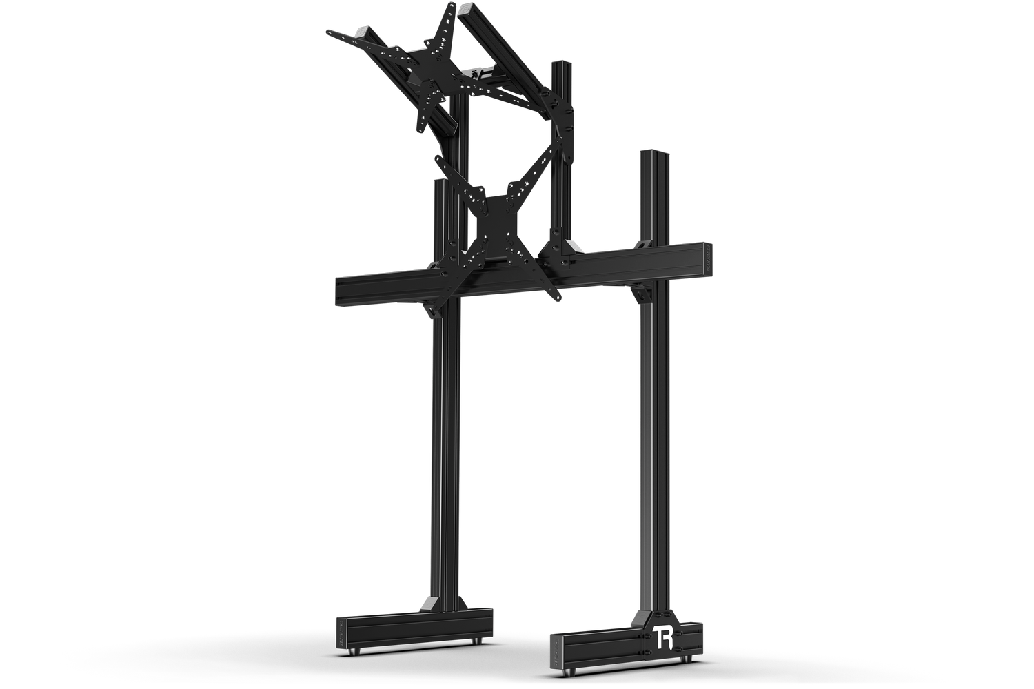 Trak Racer Black Anodized Aluminium Floor-Mounted Dual Monitor Stand - For Monitors and TVs up to 80" (main Monitor) and up to 45" (Secondary Monitor).