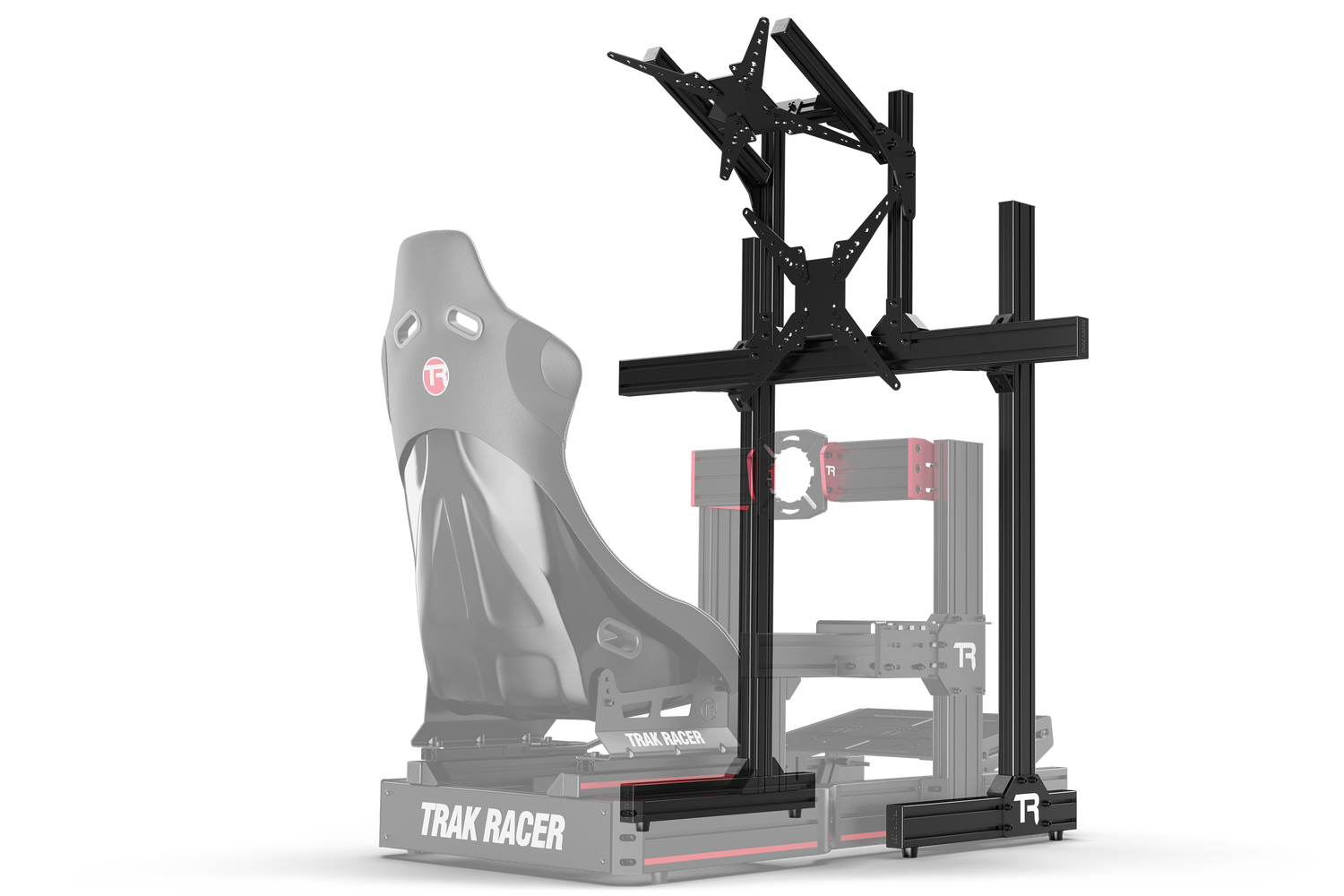 - Trak Racer's Floor-Mounted Dual Monitor Stand will support 2 monitors or TVs up to 80" (for main display) and up to 45" (for secondary Display); and are built to the same high-end build that Trak Racer is renowned for.
